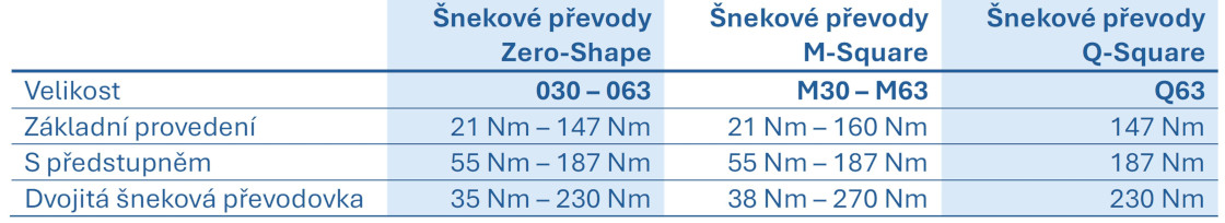 - Jako dvojitá šneková převodovka od 35 Nm - 230 Nm