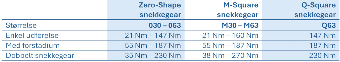 - Som dobbelt snekkegearkasse fra 35 Nm - 230 Nm